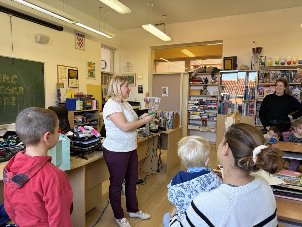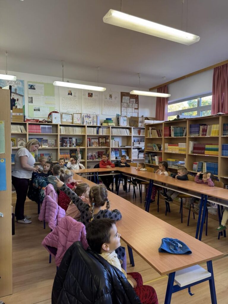 Mjesec hrvatske knjige tradicionalno se obilježava od 15. listopada do 15. studenog.  Ove su godine u središtu manifestacije bili knjižničari i to knjižničari superjunaci, knjižničari pisci, knjižničari koji odabiru knjige i aktivnosti za svoje članove. Tako je i u našoj školskoj knjižnici došlo do izražaja druženje s knjigama na razne načine. U listopadu je za učenike 5. i 6. razreda organiziran obilazak Gradske knjižnice i čitaonice Pula tijekom kojeg su se učenici upoznali s prostorima, sadržajem i uslugama knjižnica i prisustvovali radionici Knjižničar ili ChatGpt?. Školsku su knjižnicu prvi puta posjetili i učenici 1. razreda. Upoznali su se s pravilima posudbe i ponašanja u knjižnici i poslušali priču Čarolija knjižnice. Istoga dana u knjižnici su se okupili i učenici Produženog boravka koji su slušali priču o Tajni knjižnice ispripovijedane pomoću kamišibaj tehnike, rješavali su kviz o poznavanju knjižnice i njezinog sadržaja. Tijekom studenog učenici od 1. do 4. razreda posjetili su Gradsku knjižnicu Labin gdje su uživali razgledajući prekrasan knjižnični prostor. Na dan hrvatskih knjižnica, 11.11. u posjet našoj knjižnici stigli su učenici iz Dječjeg vrtića Tratinčica. Knjižničarka je za njih također organizirala pričanje priče o knjižnici i razgled raznih knjiga i časopisa. S učenicima 3. razreda tijekom Mjeseca hrvatske knjige počelo je osmišljavanje slikovnice o medijima, a suradnja traje i dalje. Sretni smo što se na razne načine promovirala važnost knjige i čitanja jer je čitanje i razumijevanje pročitanog  temelj napretka i razvoja svakog učenika.