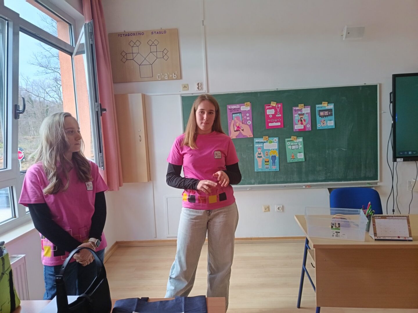 Po dolasku nas je ravnateljica srdačno ugostila u svom uredu, gdje smo pričekale početak sata kako bismo mogle započeti radionicu. Kroz projekt „Svoja“ željele smo učenicama približiti važnost sigurnog korištenja interneta — posebno toga da ne dijele osobne podatke i ne šalju fotografije nepoznatim osobama. Kako bi im poruke projekta bile jasnije, pripremile smo nekoliko kratkih i zanimljivih aktivnosti.